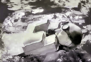 The BBC newsreel from 1950 below shows a new submarine escape suit being put through its paces by the Admiralty in Portsmouth and is almost identical to a Pathe newsreel shown in cinemas at the time. The precise date is unclear, but certainly in winter as the assistant is wearing a black cap. One must assume the intent was to get as much exposure to the public of this topic as possible, what the motive of the Admirality was, is not clear. However perhaps many Royal Navy News Reels were produced about this time and I am simply unaware of them.