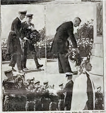 Naval uniforms were much in evidence mingling with the sombre dress of the officials and the overalls of the workmen, but however great the diversity of the outward appearance all hearts were as one in the thought of what had drawn them together.