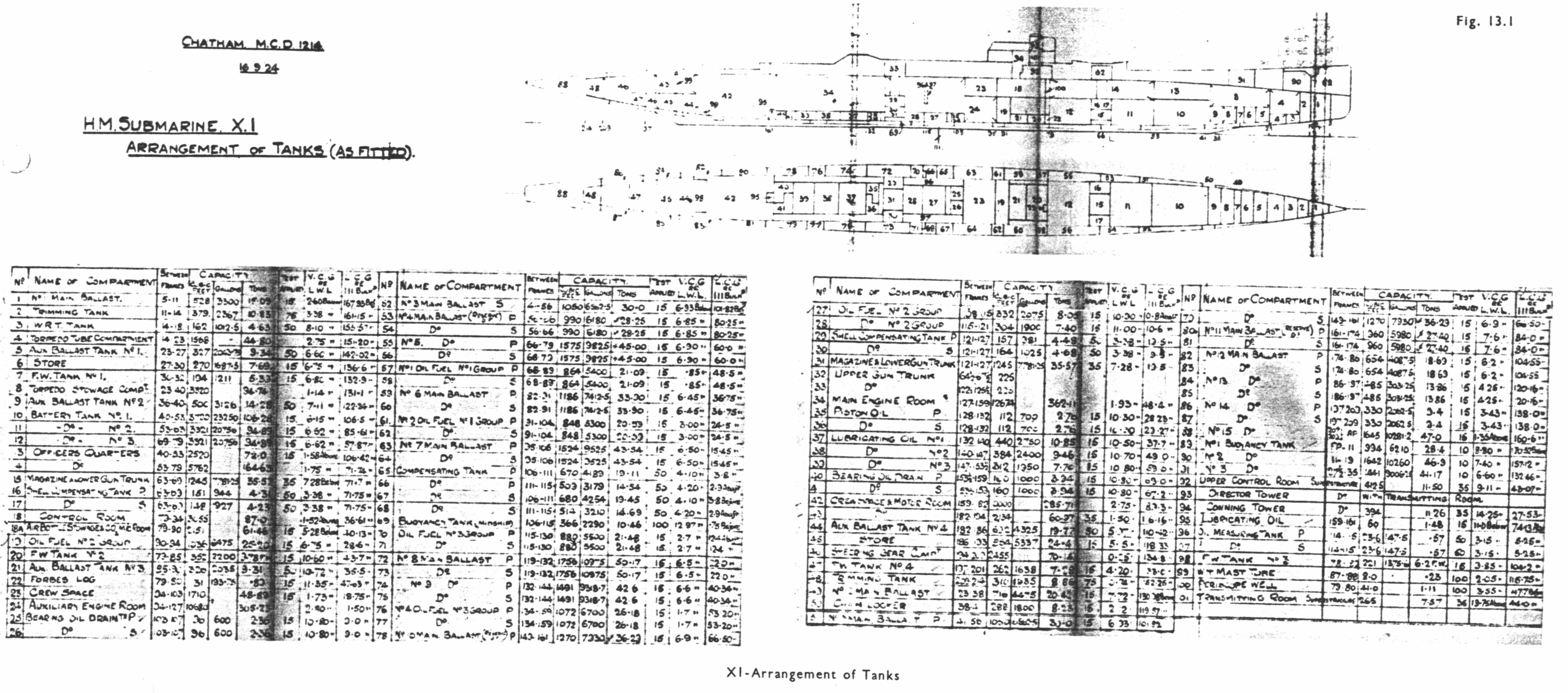 9. There were 27 main tanks, No 1 forward of the pressures hull, No 2 in the forward end of the double hull, Nos 3-14 Port and Stbd sided in the double hull and No 15 at the extreme after end completely surrounding the pressure hull and forming part of the double hull. The total capacity of the tanks was 841 tons. No internal main ballast water was carried.