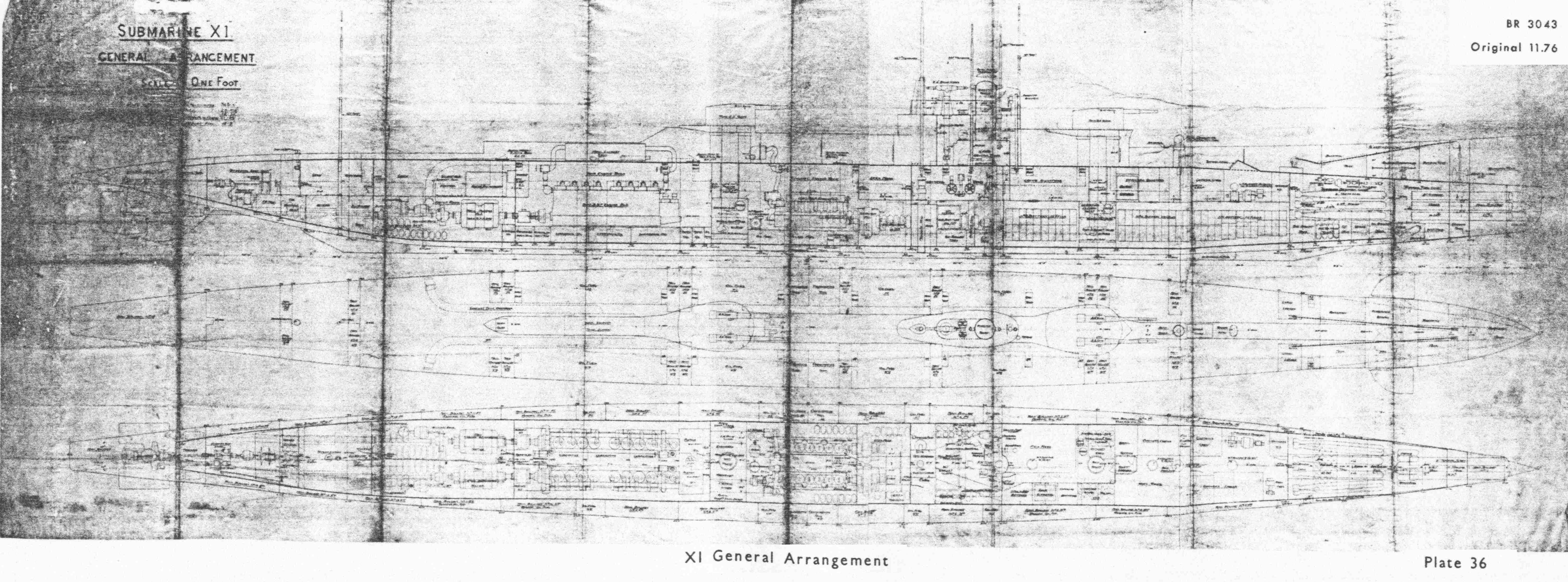 Frame spacing was generally 1ft 6in except that in way of the battery tanks it varied considerably between 1ft 6in and about 2ft 0in. The pressure hull plating amidships was 1in thick.